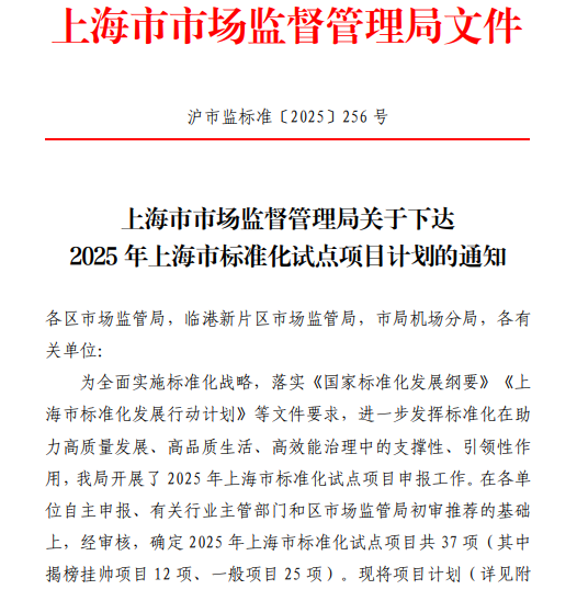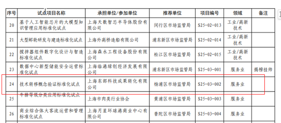 近日,上海市市场监督管理局下达2025年上海市标准化试点项目计划,国家技术转移东部中心(以下简称“东部中心”)申报的“技术转移概念验证标准化试点项目”获批立项,成为本年度37个上海市标准化试点项目之一。