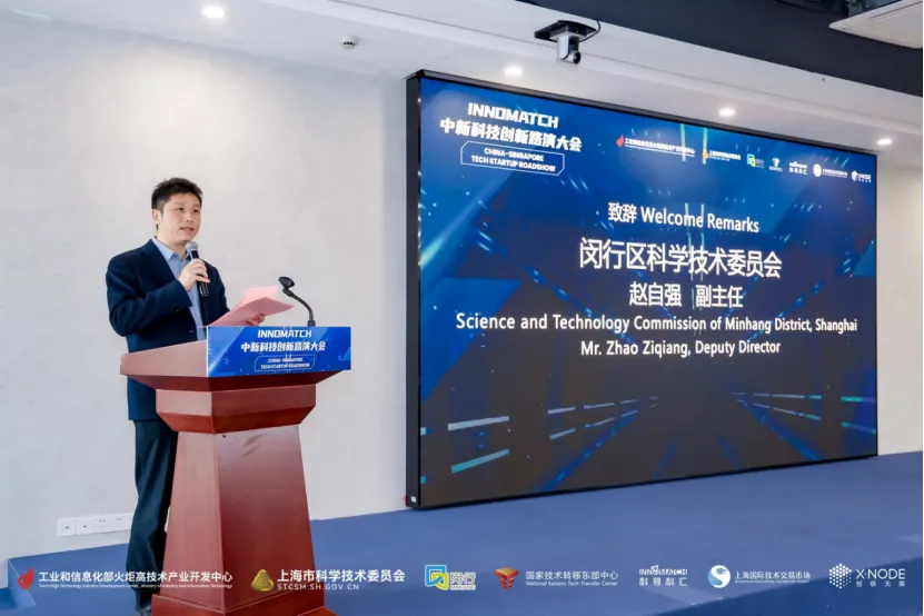 活动正式开始前,闵行区科学技术委员会副主任赵自强为活动致辞,他表示,当前,全球科技革命与产业变革正加速演进,闵行正以真招实策的努力、真金白银的诚意、真抓实干的担当,全力打造世界级科创湾区。真诚欢迎新加坡及全球科技创新企业选择闵行、共筑未来。