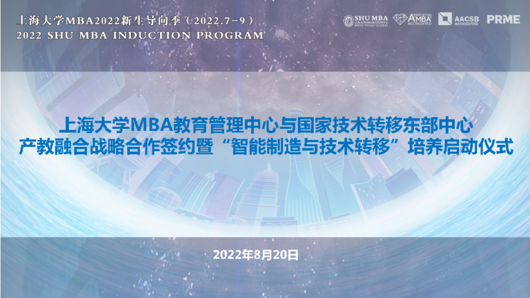 战略合作 | 上海大学MBA中心与国家技术转移东部中心举行产教融合战略合作签约暨“智能制造与技术转移”培养启动仪式 netcchina 2022-08-22 没有评论 2022年8月20日晚,上海大学MBA中